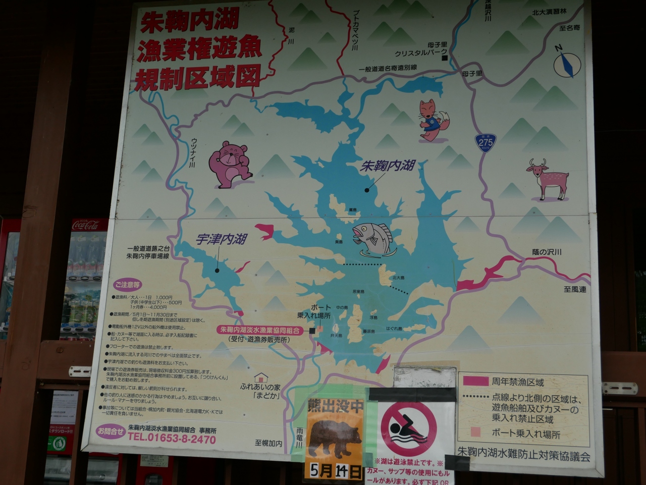 イトウ釣りを含めた魚釣りのメッカになっているようですが、残念ながら、熊による痛ましい事件のため、キャンプ場は閉鎖されており、ボートなども運行していませんでした。
