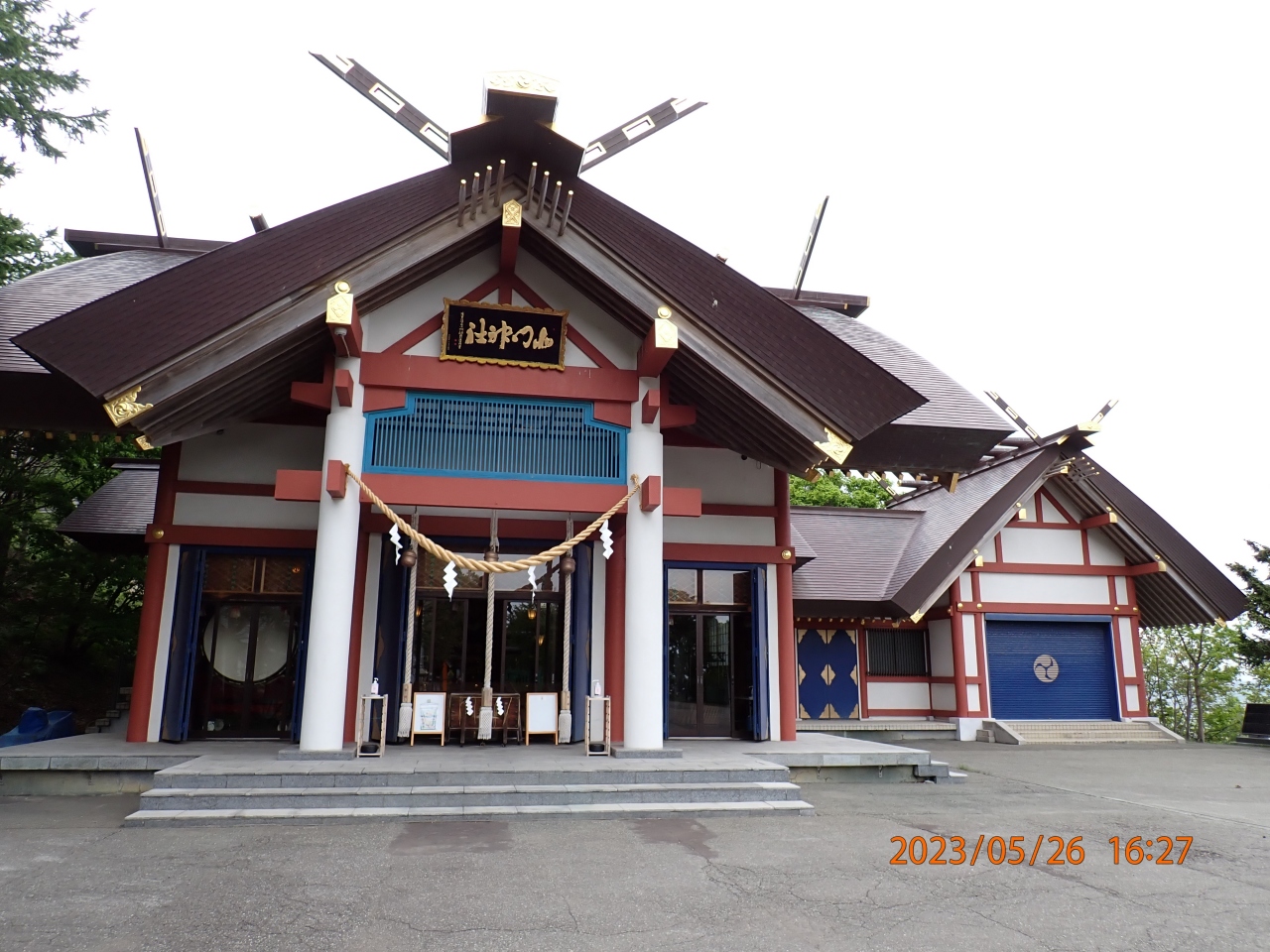 稚内市観光で立ち寄りました。北門神社は、JR稚内駅から歩いて10分程の所にある立派な神社で、石段を80段ほど上ると到着します。沿革の説明によると、北見国(宗谷、網走地方)は西蝦夷地と呼ばれていた場所で僅かに土人が住んでいる程度だったそうですが、松前藩が統括し始めてから色々変わったようです。一番の特徴は、神職が常駐する神社としては、日本最北だそうです。