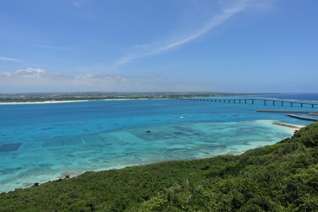 橋の外観を見て楽しむなら、宮古島側と来間島側双方の展望スポットから見るのがおすすめ。時間の都合などで1か所しか行けない場合は、お決まりだけど竜宮城展望台もしくは与那覇前浜から見るのがお手軽でいいと思います。