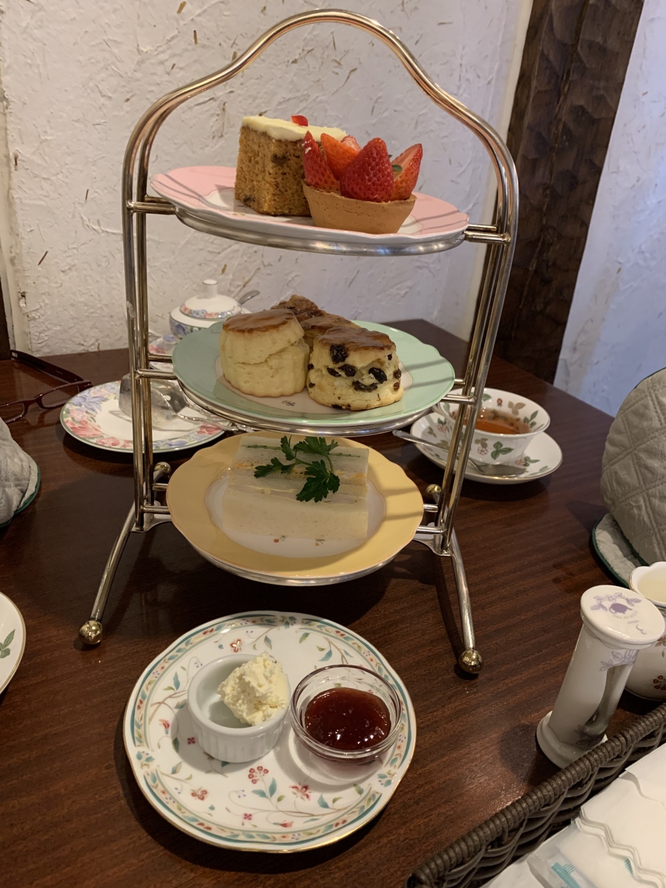 羽鳥湖の西側の丘、3月にはまだ残雪。その丘の上に「ブリティッシュ・ヒルズ」があります。ブリティッシュ・ヒルズは、とある外語学校が設立した、”パスポートのいらない英国”を謳う中世の英国を再現した文化施設です。英国の文化・語学研修に主眼を置くとみられますが、ホテルやティールームやパブの利用もウエルカムな施設のようです。マナーハウスと周辺の建物群もあわせて、建築様式からインテリアまでかなり本格的でした。いくつかあるゲストハウスは、12~18世紀にかけて建てられた英国の民家を再現したものらしい。このブリティッシュ・ヒルズを訪れた最大の目的はクラフトハウスの「アスコット・ティールーム」で、本格的なアフタヌーン・ティーのセットをいただきました。なお、事前の調査によると、ブリティッシュ・ヒルズは英国なので英語しか使えないという情報がありましたが、全然そんなことはありませんでした。むしろ英語は全く使わず肩透かし。曜日や来訪目的などによるのかもしれませんが。