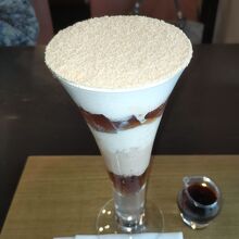 以前お店の前を通りかかった時に開店を待つ人がいらした気になるお店でした。幸いにも待たずに席に案内可能との事で、メニューも見ずに入ってみました。きな粉のパフェは、ほうじ茶のゼリーと豆乳の風味がきな粉と相まった、きな粉大好きサンには魅力的なお店だと思いました。席数は4人掛けが4卓と2人掛け1卓程度です。