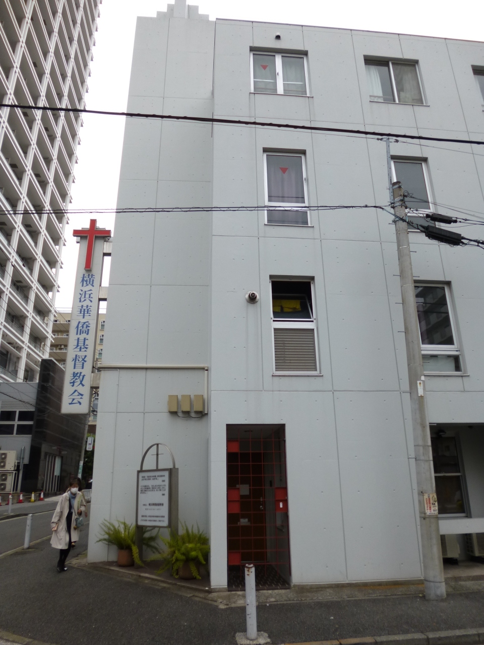 濱媽祖廟を訪問した後、蘇州小路を元町中華街駅に向かうと右手にこの横浜華僑基督教会が見えてきます。白壁のシンプルな直線の美しい建物で、近づいてみないと教会であることがわからないかもしれません。65年ほど前に創立された教会だそうです。