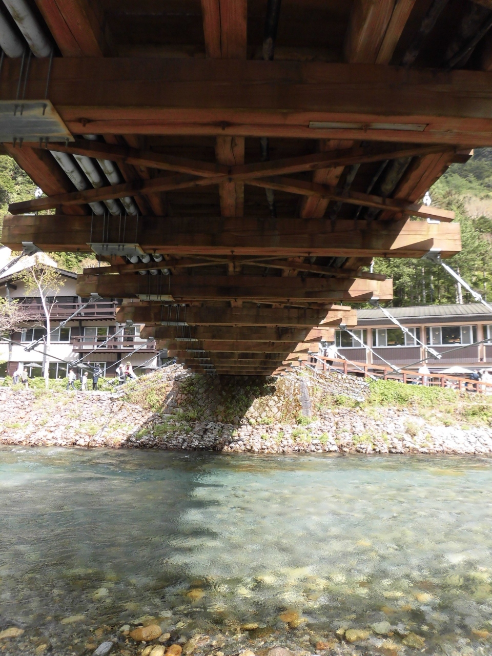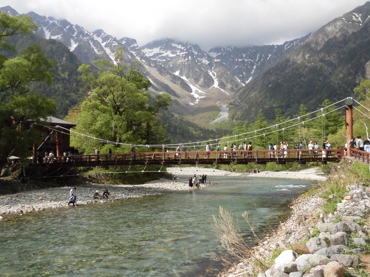 梓川にかかる吊り橋で、現在の橋は5代目だそうです。