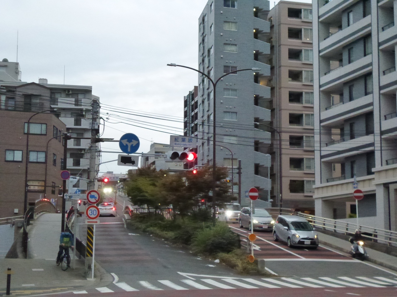 桜木町駅から徒歩4分ほど紅葉坂交差点から紅葉橋の方を見ると、坂が続いているのがわかります。ここが紅葉坂です。ここにはかつて神奈川奉行所が置かれていてその時に紅葉が植樹されたのが由来のようです。現在は紅葉橋の中央分離帯などに紅葉が植樹されていたり、案内板が当時の名残となっています。