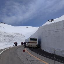 室堂からさらにバスに乗ると車中から迫力のある雪の壁が見れそうです。