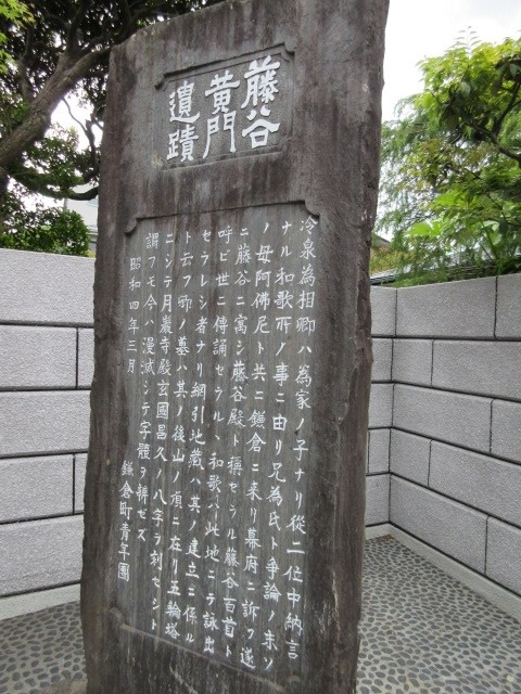 鎌倉の散策で浄光明寺を参拝しました。このお寺は冷泉家ゆかりのお寺ですので、その石碑(別名の藤ヶ谷黄門とも書いてあります)などもたっています。このお寺の裏山にはやぐらがありまし、冷泉為相(阿仏尼の息子さん)のための宝筐院塔もたっています(徳川光圀が建てたものだそうです)。ちなみにここまで登ると景色もいいです。つつじもきれいでした。
