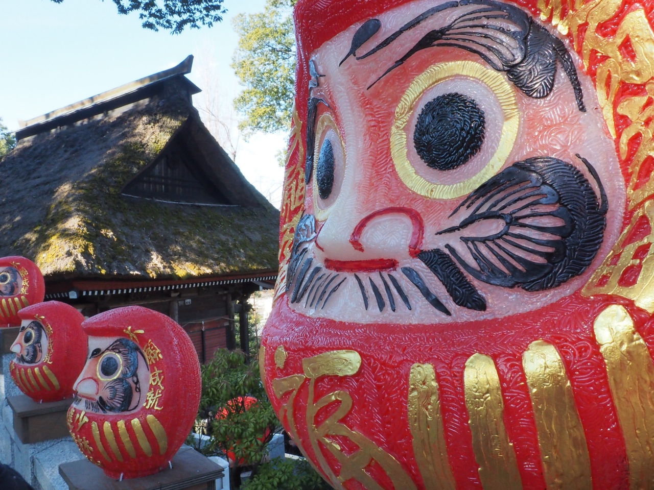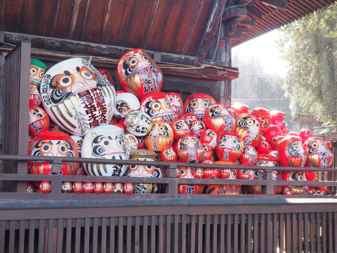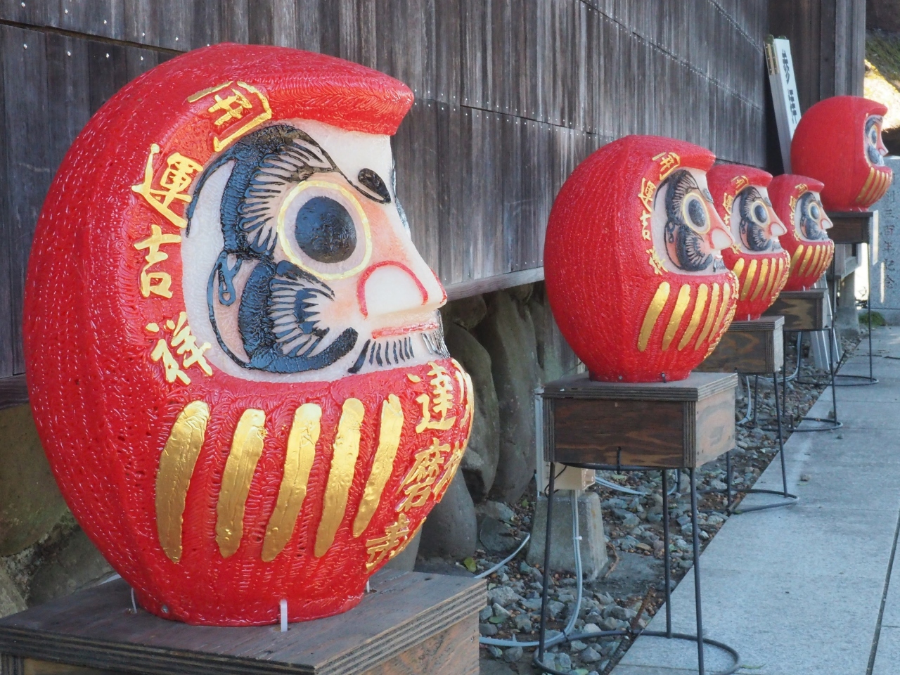 境内にはだるまがあちこちに置かれ、本堂にもたくさんのだるまが奉納されていました。