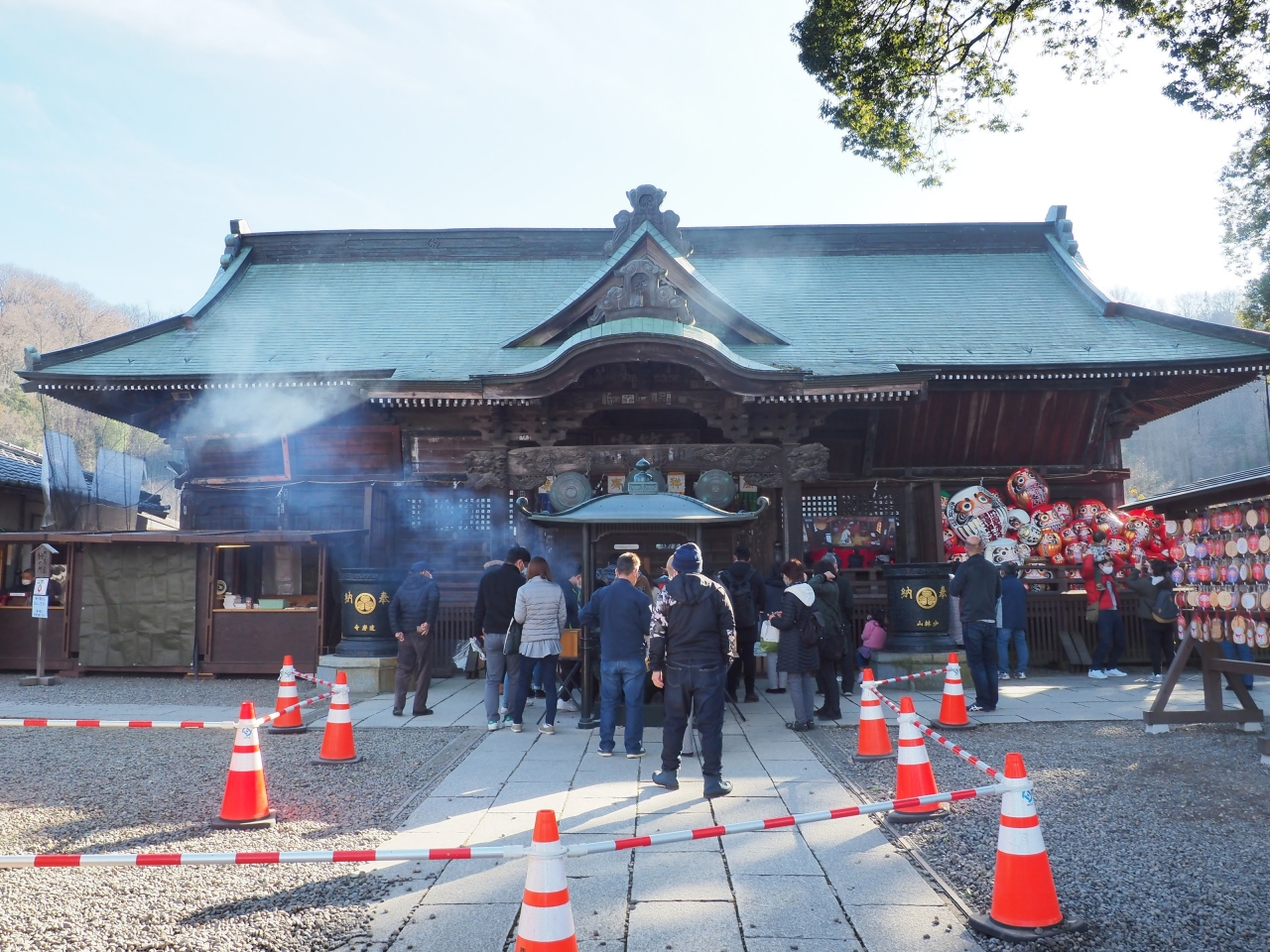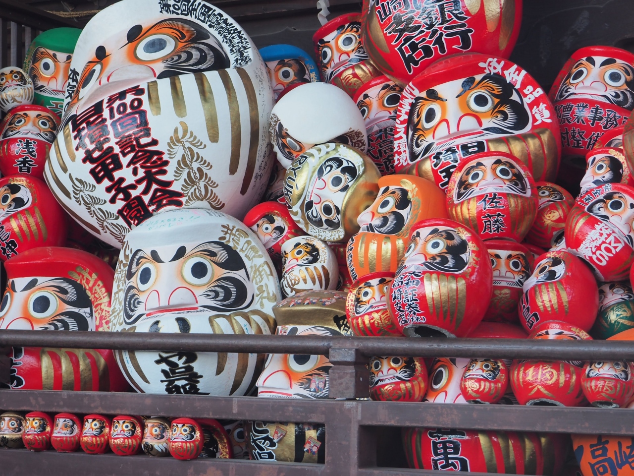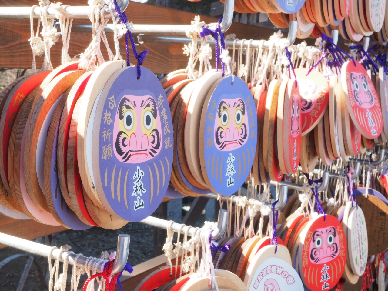 境内にはだるまがあちこちに置かれ、本堂にもたくさんのだるまが奉納されていました。