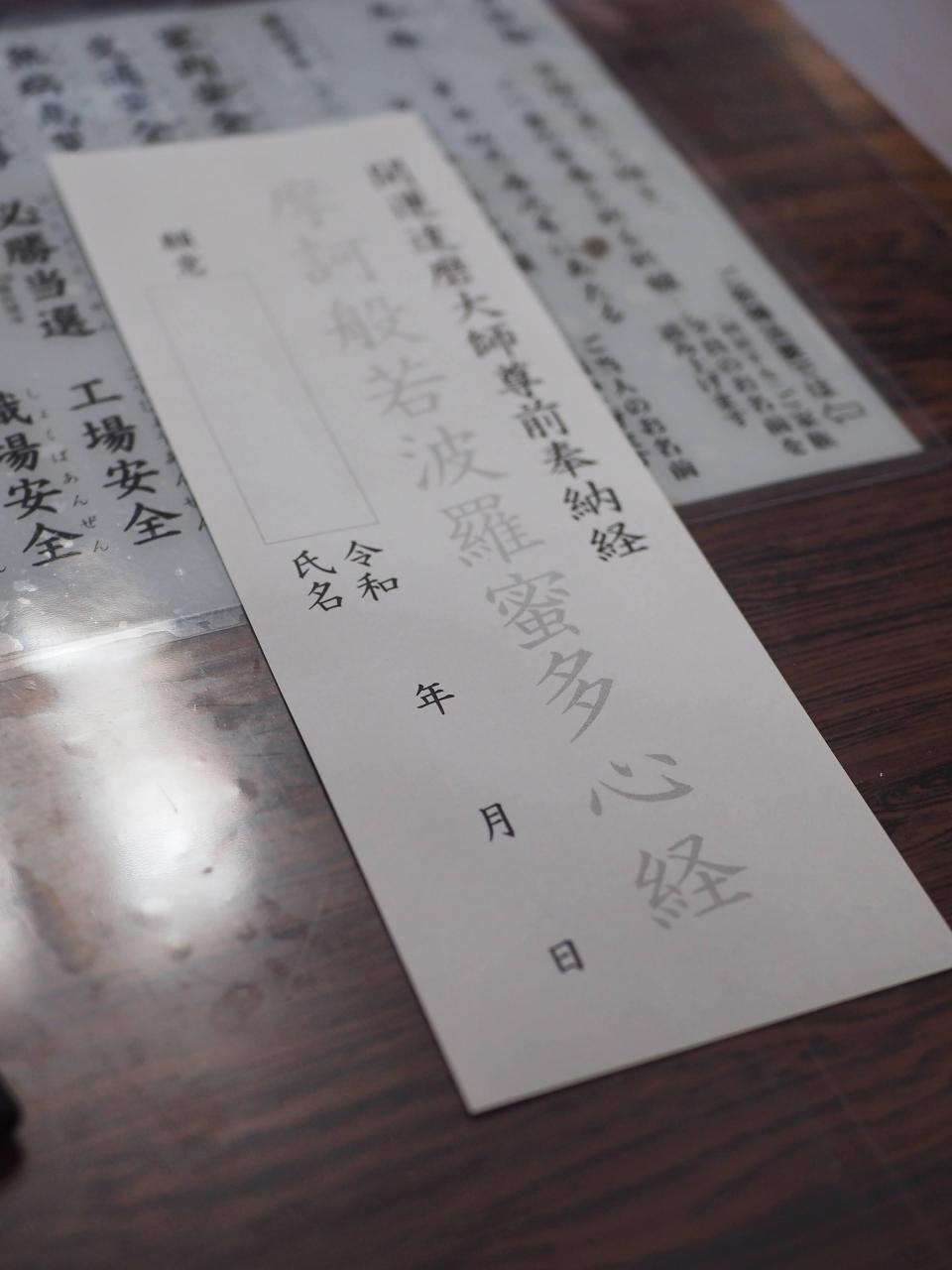 御朱印をもらう際に、納経せよとのことで、その場で般若心経(お題目のみ)を書いて納経して御朱印をいただく必要がありました。