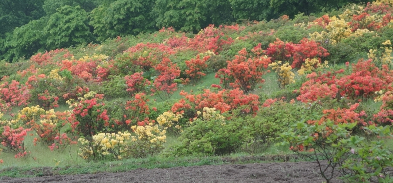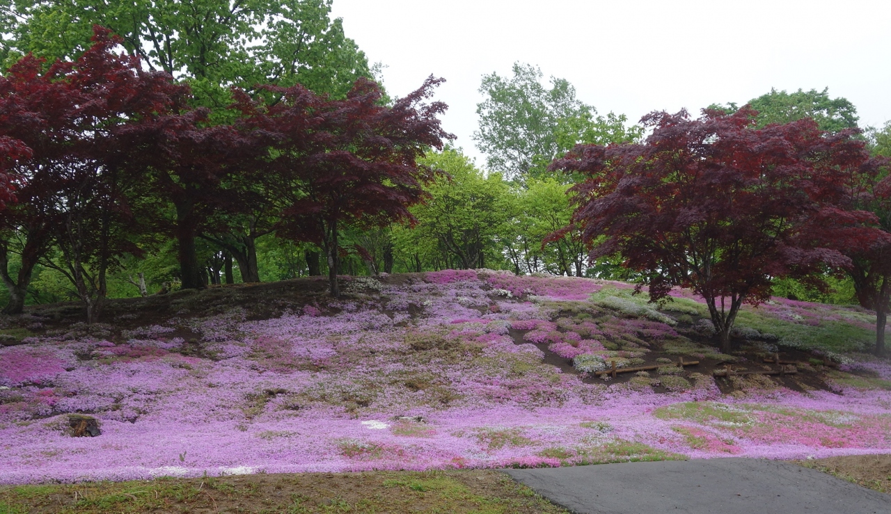 太陽の丘えんがる公園といえば,コスモスで有名です。周辺を走っていても,「コスモス園」の看板が目立ちます。しかし,芝桜も,ツツジもきれいです。芝桜の絨毯も広い範囲でたのしめます。また,ツツジもたくさんきれいにさいています。ようするに,年中楽しめるところです。