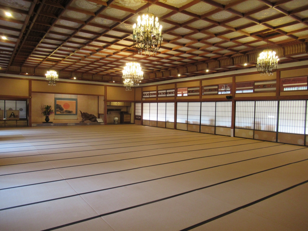 120畳の大広間や皇族方が御宿泊された貴賓室・御殿の間などを見ることができます。建物も庭園も、当代一流の洗練されたデザインで、見学する価値があります。