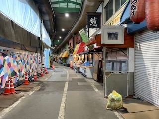 あまりきれいとは言えない川のすぐそばと言うか、その上に建つ長屋風の建物に、多くの商店が並ぶような商店街(市場)です。商店街に入ると、昭和のころを思い出す様な、何となくレトロな雰囲気が漂っています。他の都市では、大型商業施設に押され、この様な商店街はだんだんと無くなっている状況ですが、ここは、違っているような気がします。少し前に大規模な火災がありましたが、復興してくれることを祈っています。