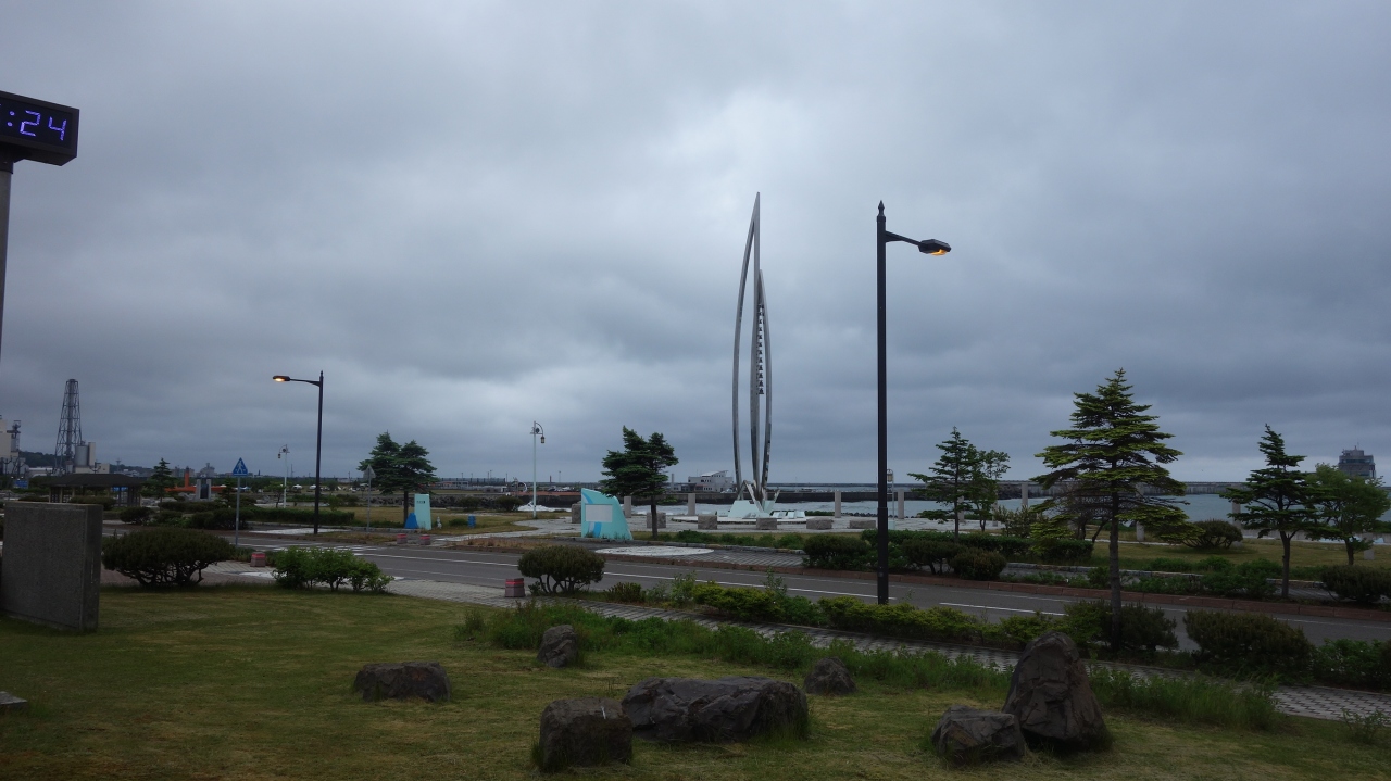 海辺の公園。モニュメントが目印。冬には厳しいところでしょう。
