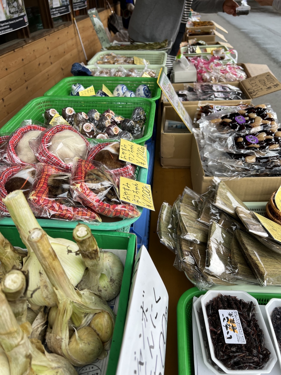 手づくりの食べ物やお土産になる加工品や野菜など売っていますが、野菜は一般的なものはありませんでした。