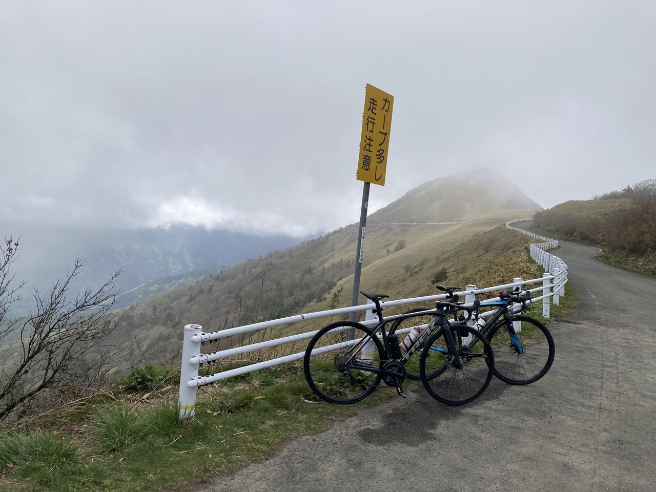 通称UFOライン(いの町道瓶ヶ森線)へ自転車屋さんの仲良しスタッフに連れて行ってもらいました。愛媛側の石鎚スカイラインの麓からロードバイクで土小屋を経由し、お昼休憩後に目的地のUFOラインへ向かいましたが土小屋からガスが多くあたりは真っ白でした笑 時には20m先が見えないほど、