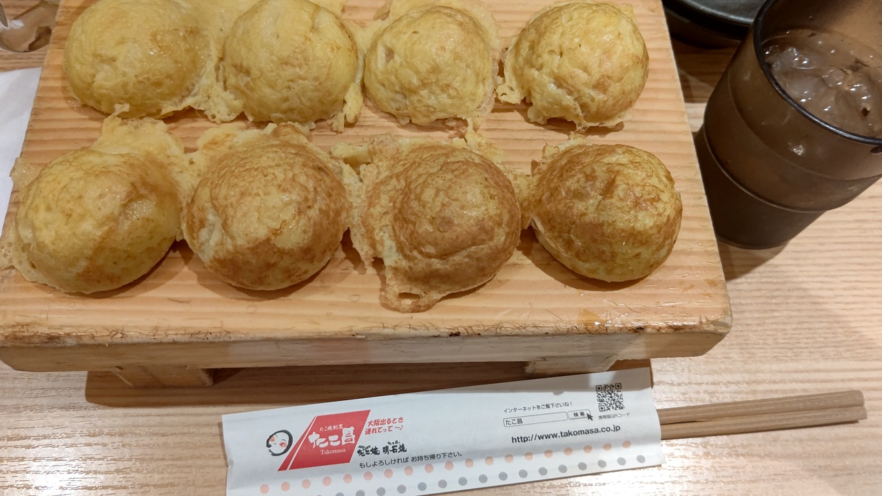 新大阪駅のたこ昌で一杯飲むことにした。ここの魅力は明石焼きとビールのセットがあることだ。いわゆるちょい飲みセットのような感じでアツアツの明石焼きをつまみながらビールをグイグイ飲んでいく。当然ながらビールが足りずもう一杯!