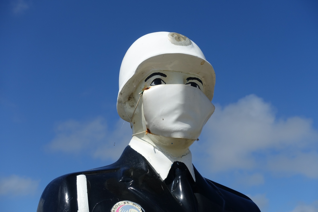 あのまもる君がコロナ禍の状況にあってマスク着用になっていました。すべてのまもる君を確認したわけではありませんが、自分が見かけたまもる君は空港にいるのも含めてマスク着用バージョンに。人間と同様で、マスクをしているから顔の表情がよく見えなくなってます。でも、目だけは出ているので交通安全を見守る鋭い視線だけは健在。まもる君もマスクを外す時がくると思うので、今だけ見られたと思えば貴重でしたね。
