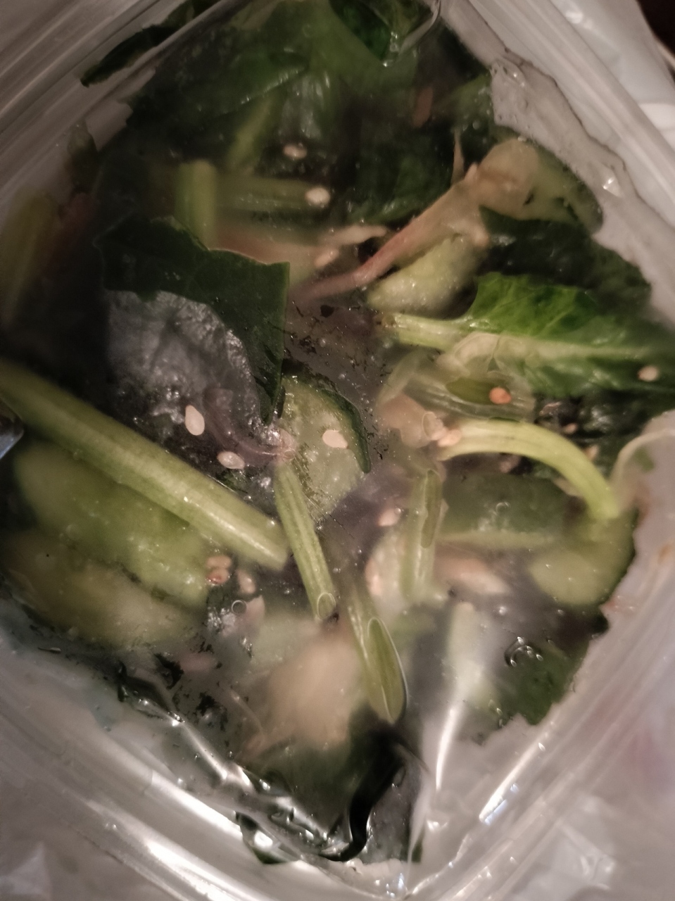 今回は、ホウレン草やミョウガ等のガーリックサラダ200gを購入しました。¥1500近くでちょっとお高かったけど、美味しかったです。