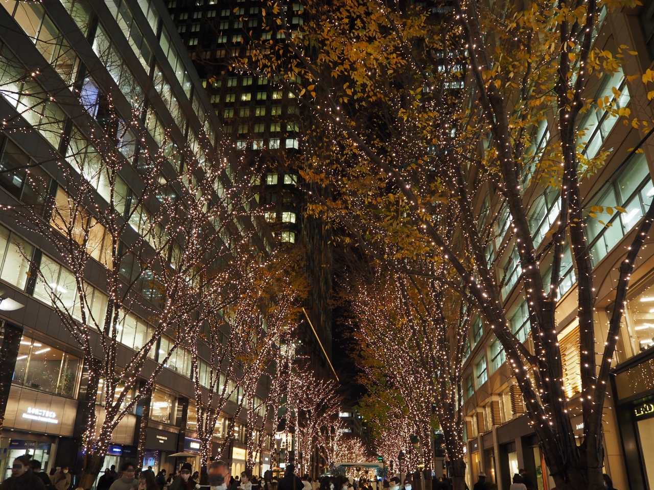 11月下旬から丸の内仲通りの木々にイルミが灯って、とっても綺麗です