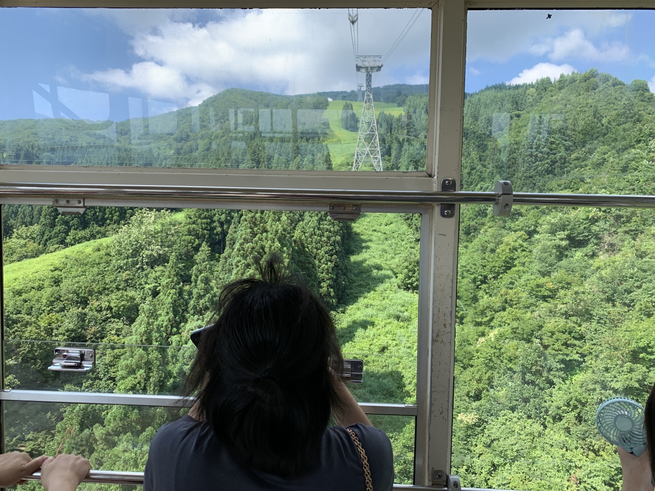 八海山の4合目付近まで最速約5分で行くことができます。駅の横には展望テラスがあり、少し登ると展望台があります。日本海方面…佐渡島が見えるかな~と思い目を凝らしてみましたが、この日は少しかすんでおり見えませんでした。八海山スキー場でもあるこの地、若かりし頃にはこのロープウエイで登り一気に下までロングダウンヒル…好きなスキー場の一つでした。
