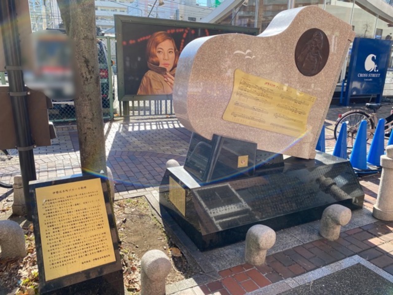 伊勢佐木町商店街を5丁目辺りから4丁目方向に歩いているとありました。最初はギターを模したオブジェかなと思ったらピアノでした。伊勢佐木町ブルースとは遠い昔に書いたようなフレーズです。後ろにある映画の看板みたいなのもセットなのですね。