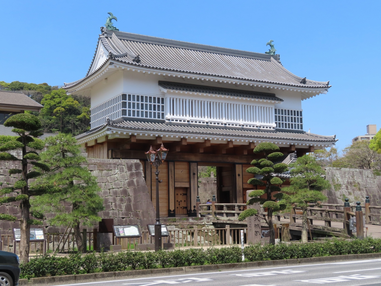 鉄道旅で鹿児島駅から鹿児島中央駅まで徒歩移動してみました。知らなかったです、大手門が新調?されたの。その大きさは圧倒的で、江戸城大阪城などとも遜色ないものです。付近にあった壁広告も特筆ものだと思います。