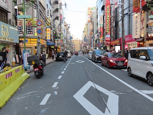 南海難波駅東側からカーブして堺筋の日本橋3交差点へ続きます