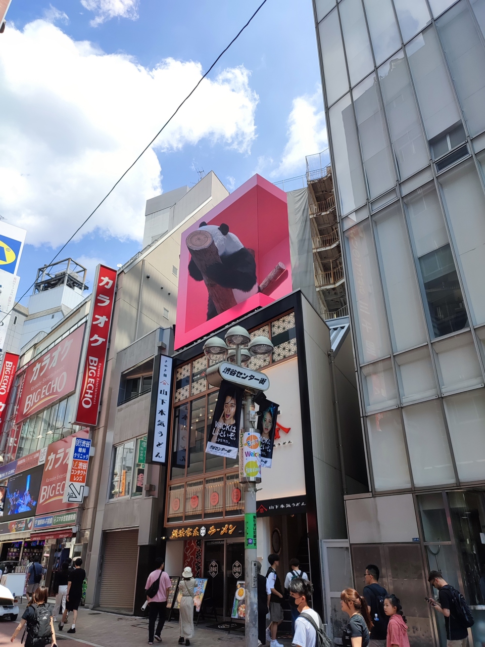 大きなビジョンに囲まれて、いろいろな人が交差します。渋谷センター街にはおしゃれな飲食店がいっぱいで、ちょっと怖い感じもします。