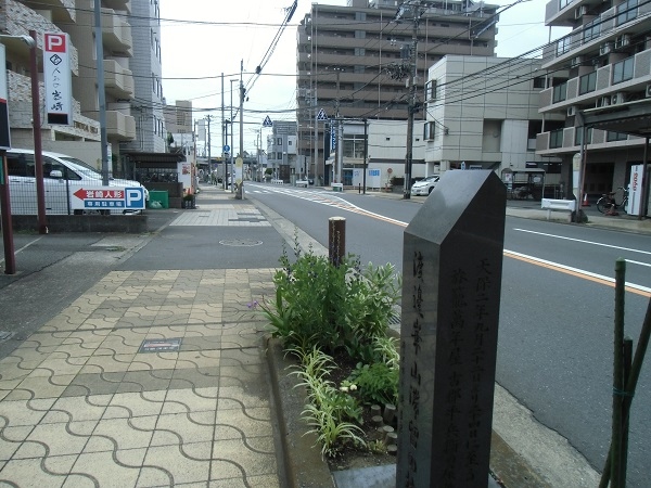 本厚木駅北口から北東へ約680mのところ、県道601号線沿いに碑があります。