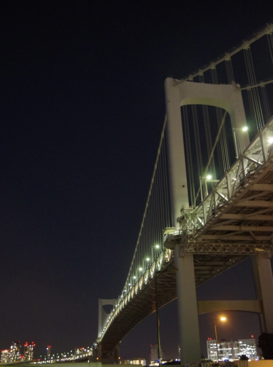 夏休みの実家帰省の後、東京観光をした時に立ち寄りました。 レインボーブリッジはお台場に行くときに渡る橋で、ゆりかもめ、車、徒歩など様々な方法で渡ることが出来ます。 自転車でも渡れますが、押して歩かないとダメです。