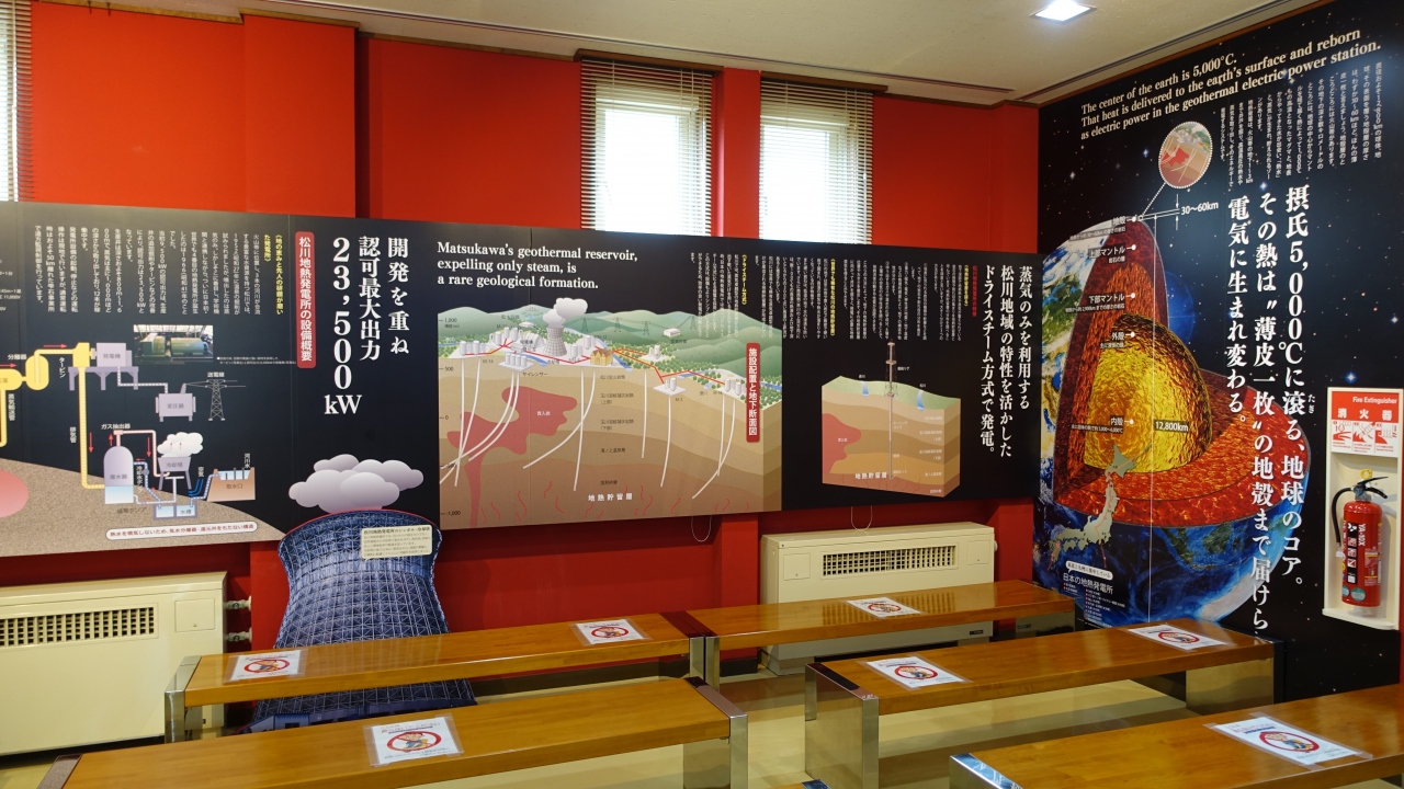 松川温泉郷の中に東北電力の松川地熱発電所がある。松川地熱発電所は1966年に運転を開始したた日本で最初の商用地熱発電所で、併設された「松川地熱館」を無料で見学できる。館内には地熱発電の仕組みを説明したパネル類や、運転開始当時に使われた東芝製の復水タービンのカットモデル等が展示されている。