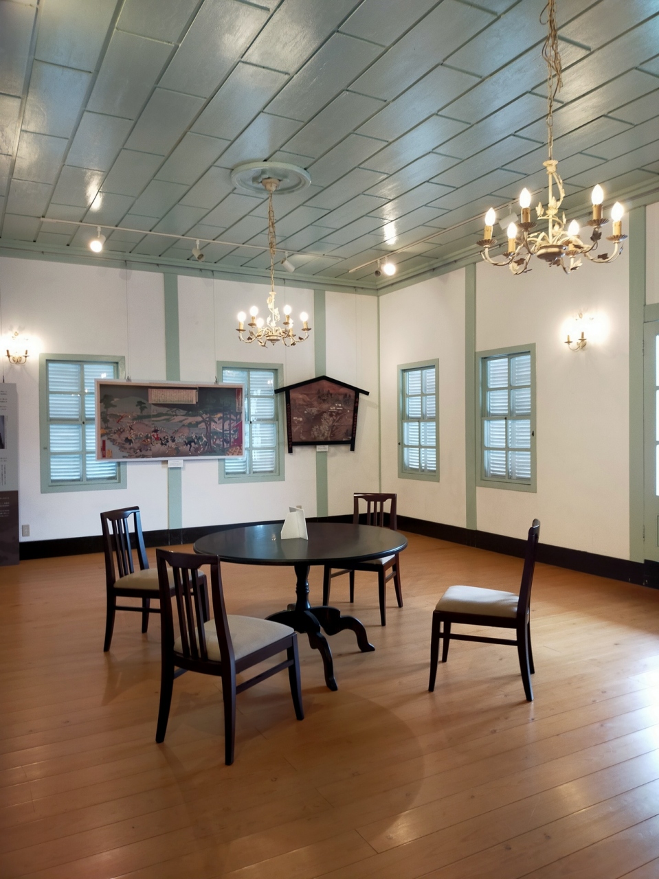 元警察庁舎の白い洋館です。NHKのらんまん関係の展示がありました。そのためか、鹿鳴館時代の雰囲気が漂う建物でした。二階建てで、二階も見学可能で、無料です。佐川の観光地の中心にあり、立ち寄りにも便利です。