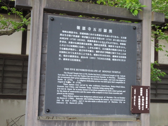 盛岡の観光で参拝しました。大きなお寺で曹洞宗です。立派な山門をくぐって境内へ。木々のある静かな場所です。本堂で料金(300円)を支払って、五百羅漢のある建物へ、建物内にはびっしりと羅漢様の像が並んでいました。見上げる感じで迫力ありです。