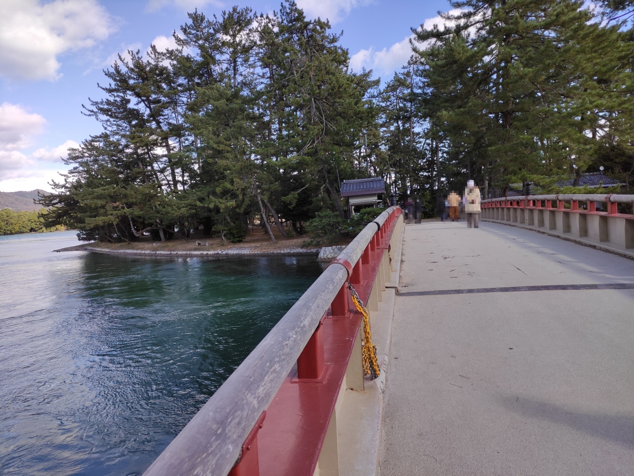 かにツアーで天橋立に行った際に渡りました。日によっては50回くらい回るらしいのですが、ツアーの滞在時間中は機会がありませんでした。さすがにがっしりした橋でコンクリート製ながらもちゃんと欄干もついていました。
