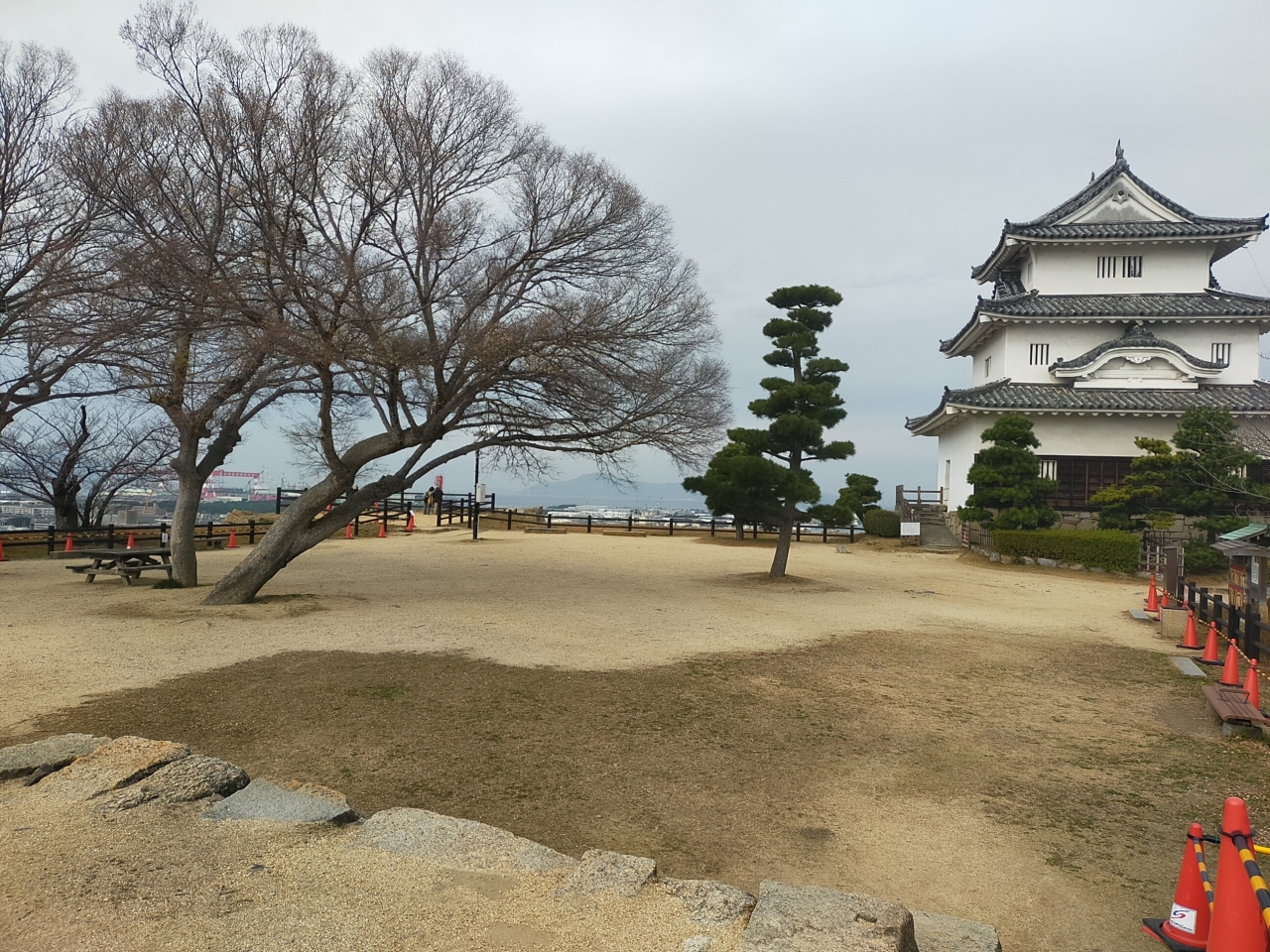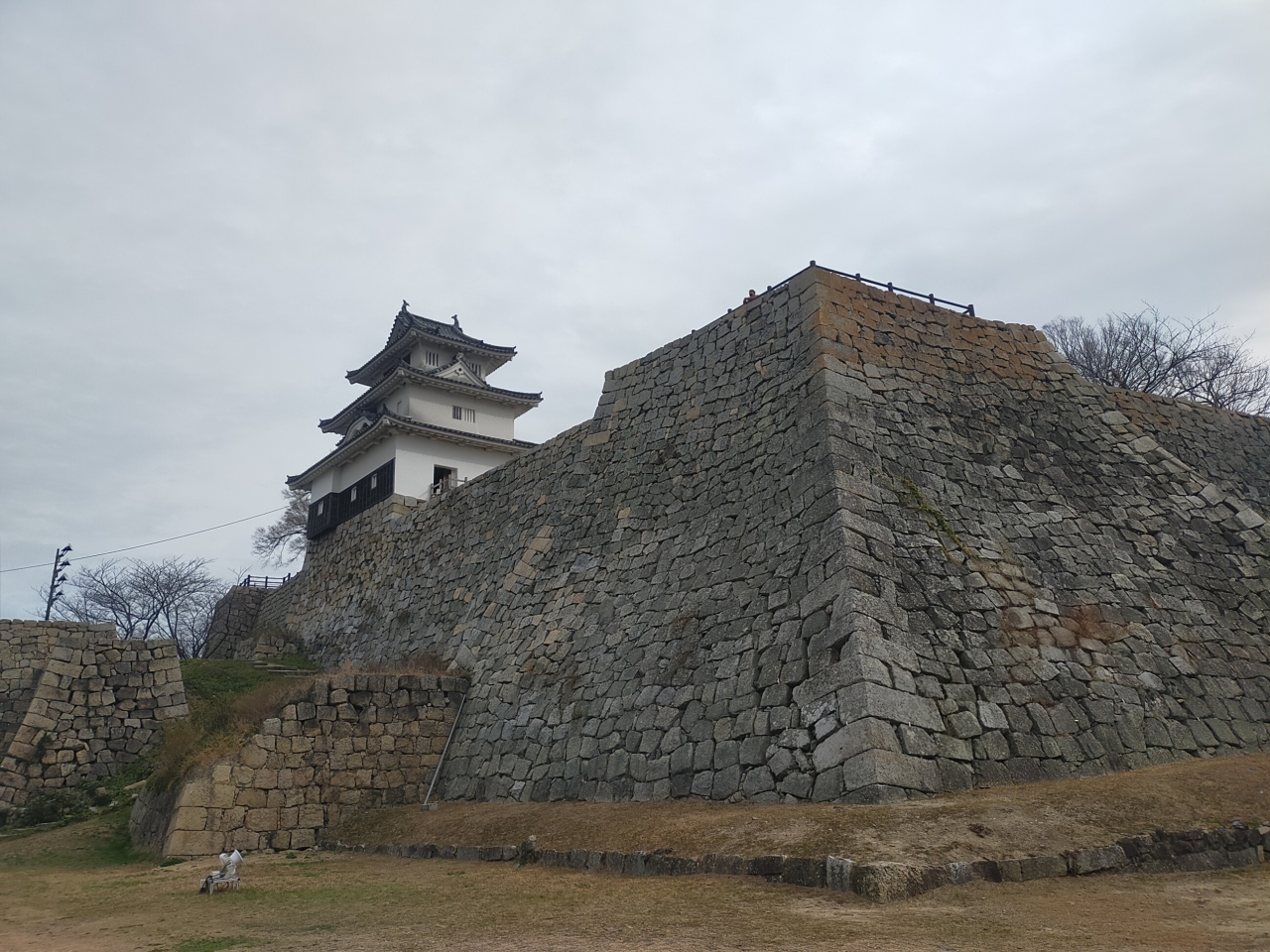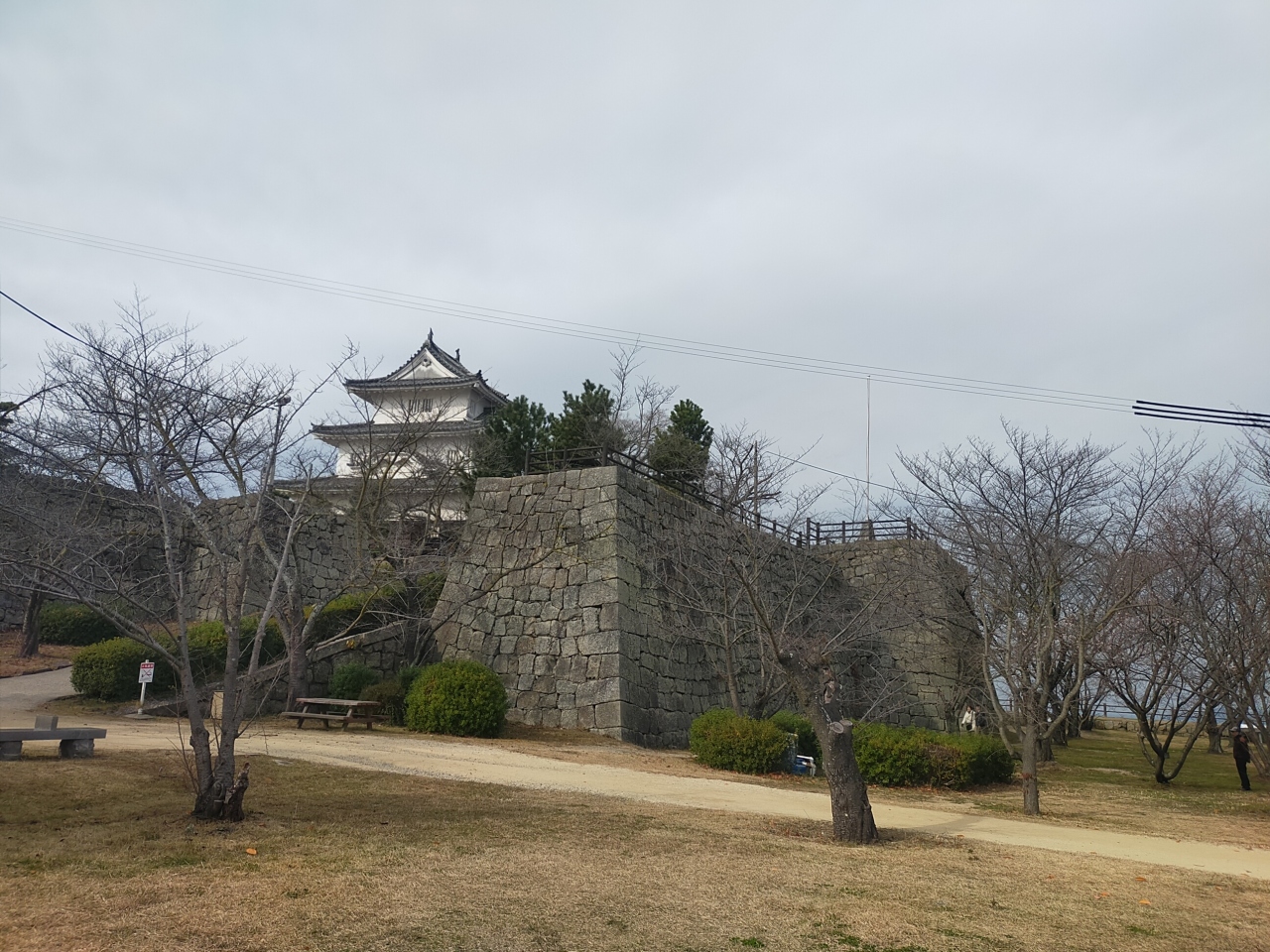 標高66mの亀山を利用した山城です。麓から見上げると素晴らしい石垣が視界に入ってきます。見応えのある石垣に圧倒されました。本丸北面に位置する天守は3層3階ですが櫓の間違えじゃないと疑ってしまうほど小振りなものです。だからといって、丸亀城の価値を毀損するものではありません。本丸から4方向すべてよく観えます。江戸幕府の一国一城令を乗越え、残ってくれたのは嬉しい限りです。