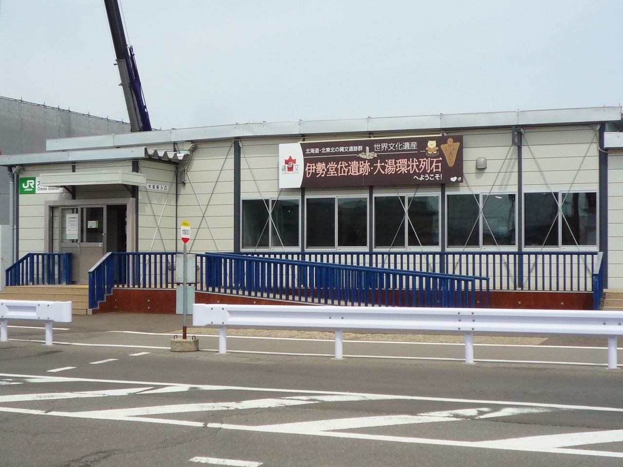 - 新駅舎建替え工事中の為プレハブ仮駅舎の利用