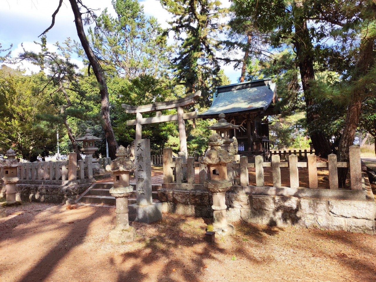天橋立の南側、廻旋橋を渡って徒歩10分くらいだったと思います。恋愛成就のパワースポットとして人気があるそうで、龍伝説に関係してか八大龍王をお祀りされています。細い土地の天橋立なので、大きな神社というわけではないですが、趣がありました。