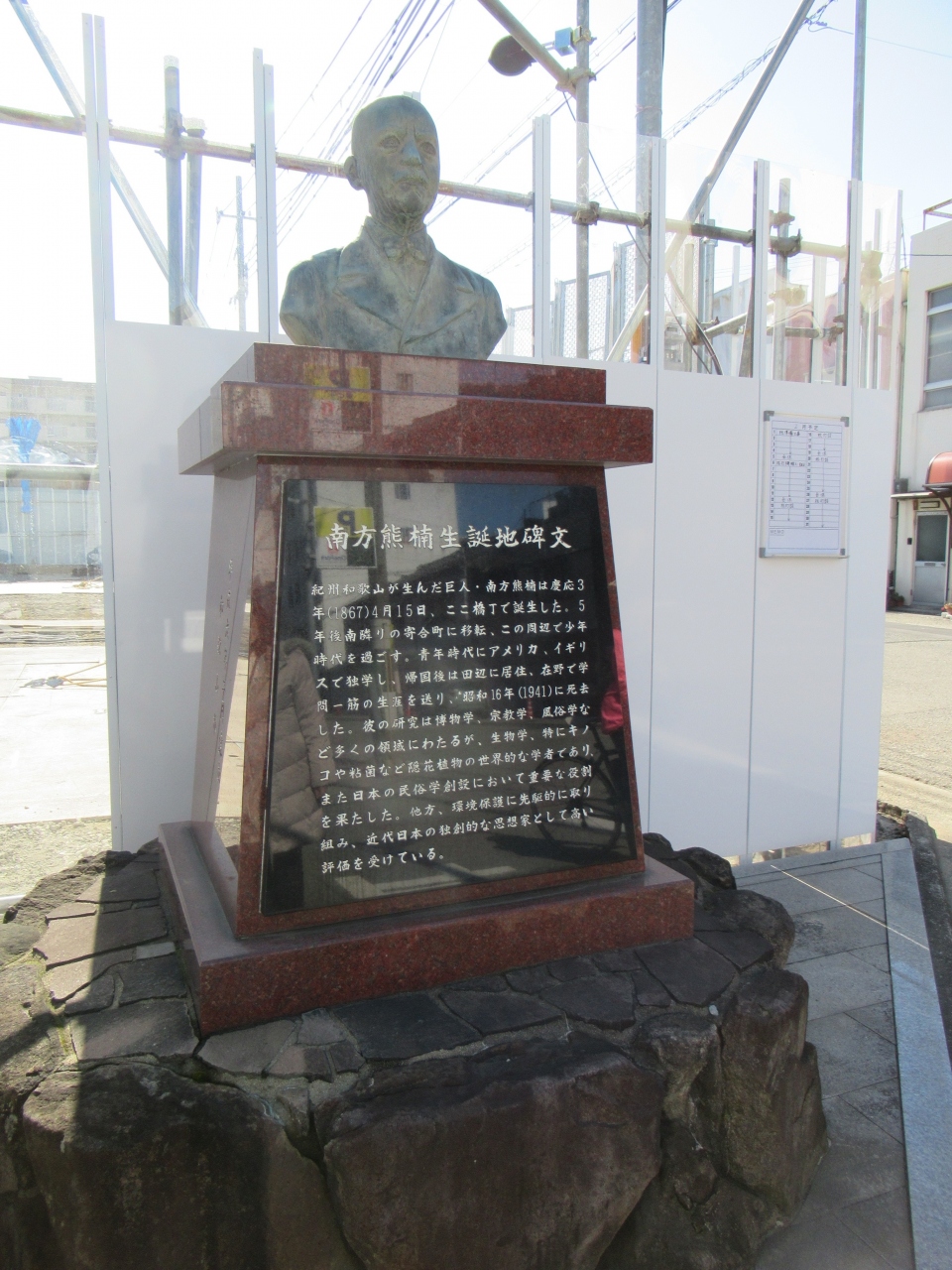 碑は、台座の上に胸像が置かれていて、台座には碑文が刻まれていました。