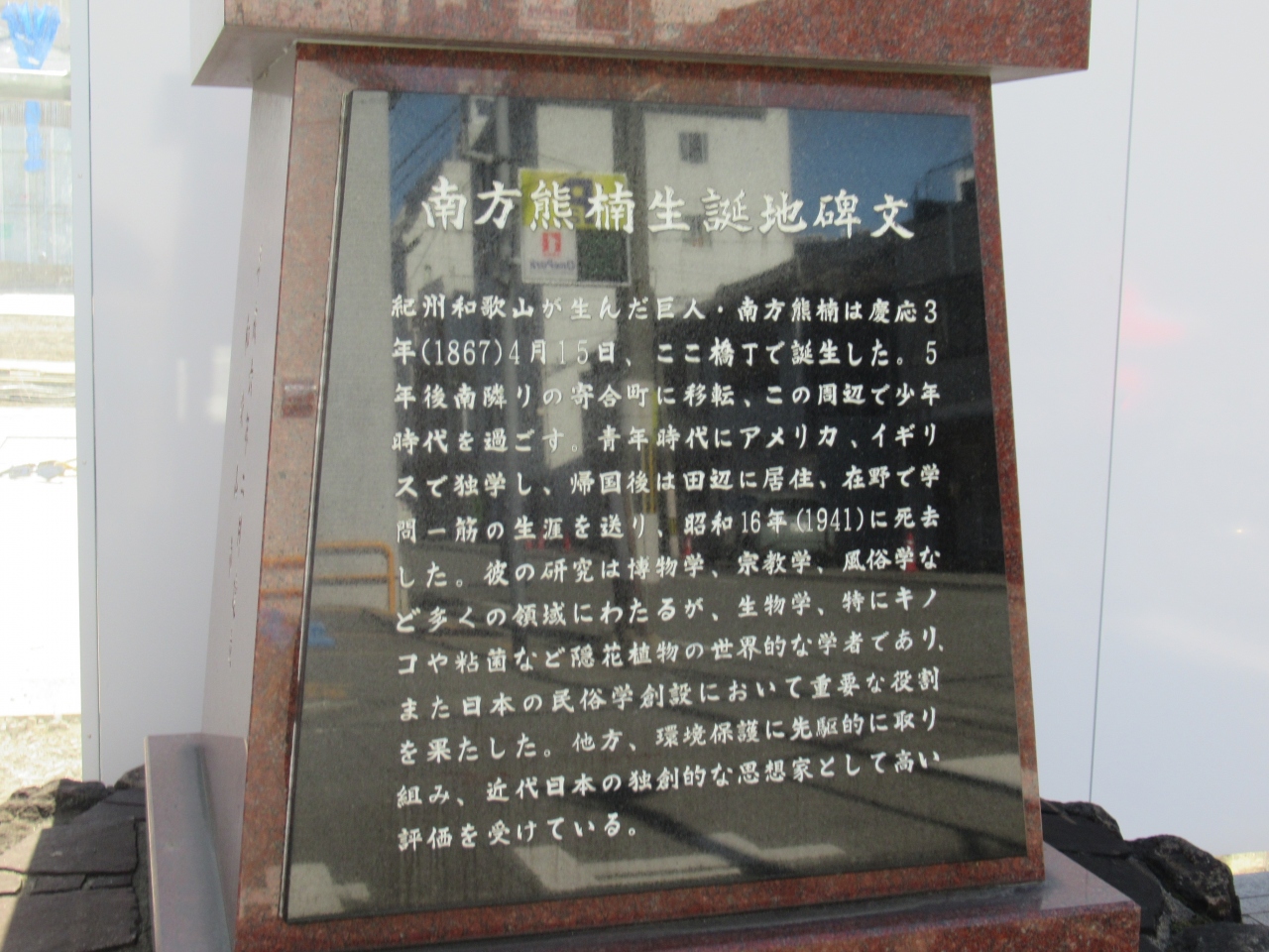 粘菌の研究で有名な南方熊楠の生誕地碑は、和歌山県和歌山市橋丁にあります。