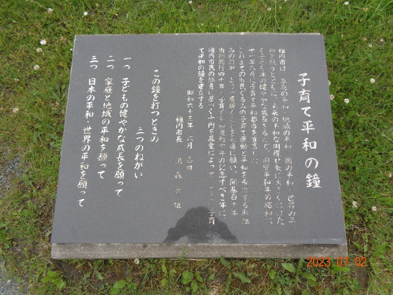 「平和な国際社会と子ども達の健やかな成長を願い、昭和61年(1986年)の国際平和年に『子育て平和都市宣言』をしている稚内市では、毎年9月1日に『稚内市子育て平和の日記念式典』を行っています。 宗谷岬平和公園に『世界平和の鐘』が設置された昭和63年、市民の善意と10円玉募金によって『子育て平和の鐘』も併せて置かれ、全市民が世界の恒久平和を願い、子育て運動を一層推進させる」 資料参照しました。