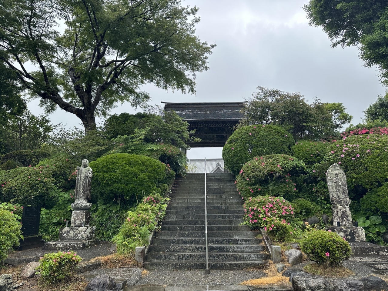 粟又の滝の滝めぐりコースの途中にあるお寺で、養老渓谷の渓流や滝とともに、観光スポットになっているお寺です。お寺の周囲には花が植えられていますが、中でも500本を超えるツツジは見ごたえがあり、特にツツジの名所として知られています。