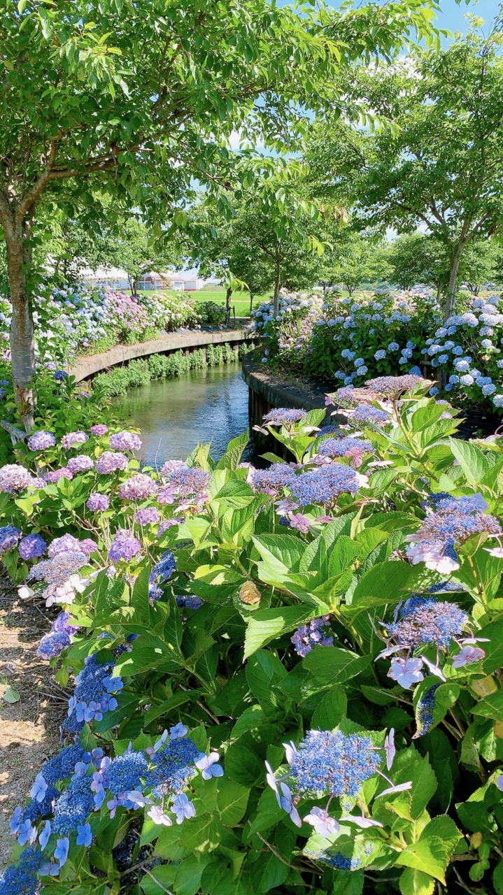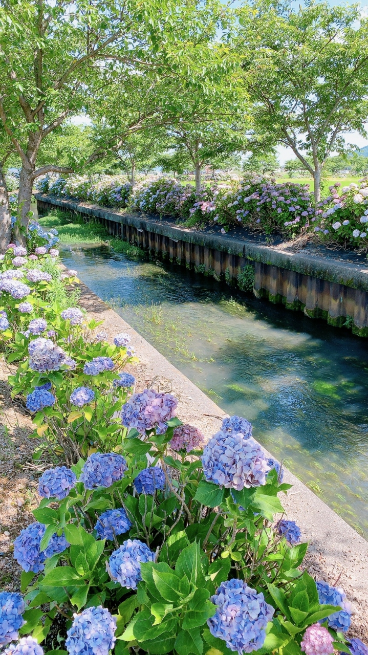 滋賀県内の、紫陽花の見どころを調べていたらhitしました。 特に寺社の境内や公園内に紫陽花が植えられているわけではなく、宮荘川沿いに地元の方が植えて管理されているところのようです。 カーナビでもいまいち場所が出て来ず、近くまで行ってからはGoogle Map頼りに向かいました。 車で行く場合は(というか、車が無いとかなり厳しいです)、近くのJAグリーン近江五個荘ライスセンターという倉庫が、紫陽花を見に来た方のための無料駐車場として開放されているようなので、そこを目印に行けば分かりやすいです。 そこから歩いて2分くらいで紫陽花スポットです!