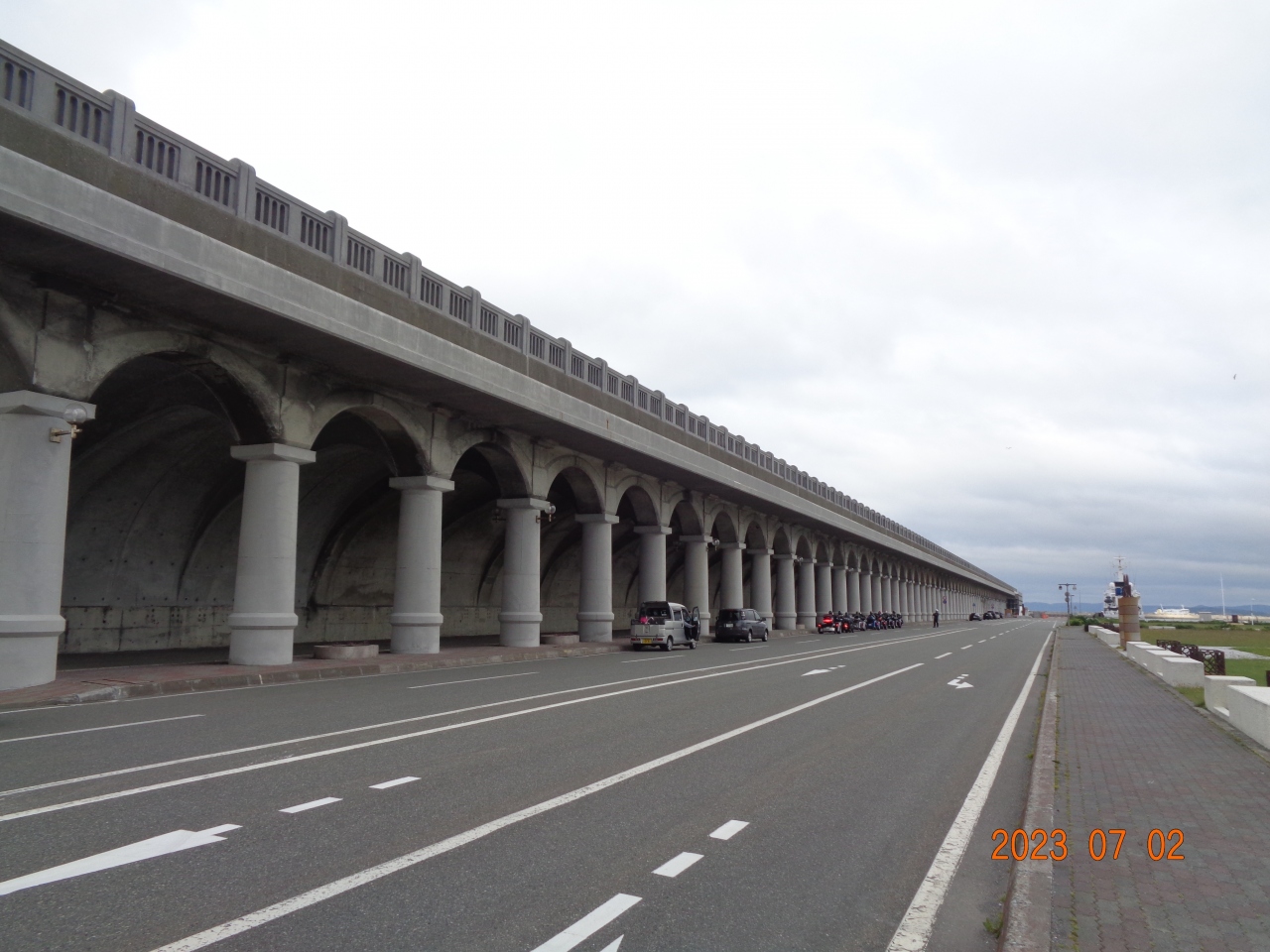 この防波ドームは昔ここまで線路があり、稚内⇔樺太を結ぶ航路があり北からの大きな波から列車や船や荷物を守るために作り、当時の技師が考案した形が今のようになっているそうです。