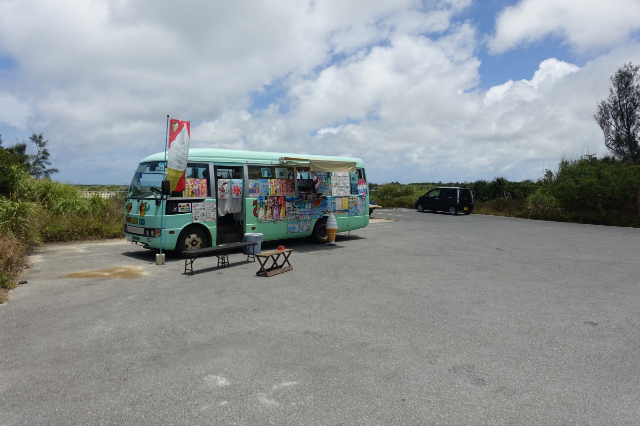 元々は建設中の伊良部大橋を宮古島側から見学するプレハブ施設(見学ステーション)が建っていた場所。プレハブの屋上は展望台として開放されていました。伊良部大橋開通後はそのプレハブの建物を利用して「橋の駅んみゃーち」という売店に。で、今回訪れたところプレハブも撤去され建物は無くなってました。