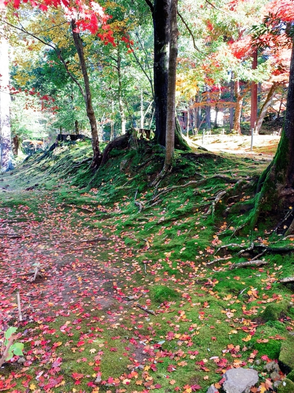 名勝庭園の石段部分は、新緑の時期は、訪れる人も少ないからか歩く人も少ないので石段全体が苔むしてる感じでしたが、秋はもみじの赤い葉っぱ+苔のコントラストがキレイでした。