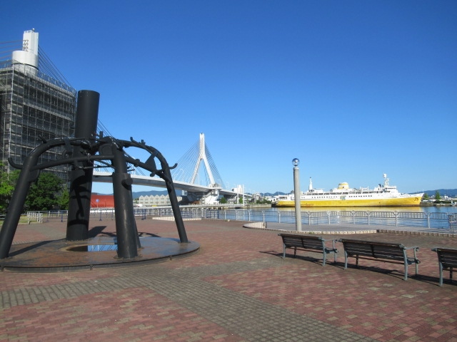ここは青森港に隣接した「青い海公園」で、「青い森」ではなく「青い海」なので注意してくださいね。ベイエリアでは「八甲田丸」付近が人気スポットになっているようですが、海上遊歩道である「青森ラブリッジ」で来ることができますので散策コースとしておススメですね。テント小屋がありますが青森ねぶたの制作保管小屋?のようです。そうですよこの公園は、ねぶた祭のフィナーレを飾る花火大会を開催、「ねぶた海上運行」のメイン会場となるところです。また来たいわー。