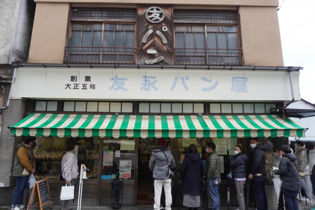 友永パンは別府の市街にあって、この日も長い行列ができていて。そのつもりはなかったのですが、つられて私も行列に並んでしまいました。いくつか買いましたが、ふっくらしているのにそれなりに弾力というか粘りがあってみたり、素直な甘さとバターの香りがいいハーモニーだったり、普通のようでいて普通ではない。これは人気も実力も備えていて、ちょっとした怪物的なお店だと思います。