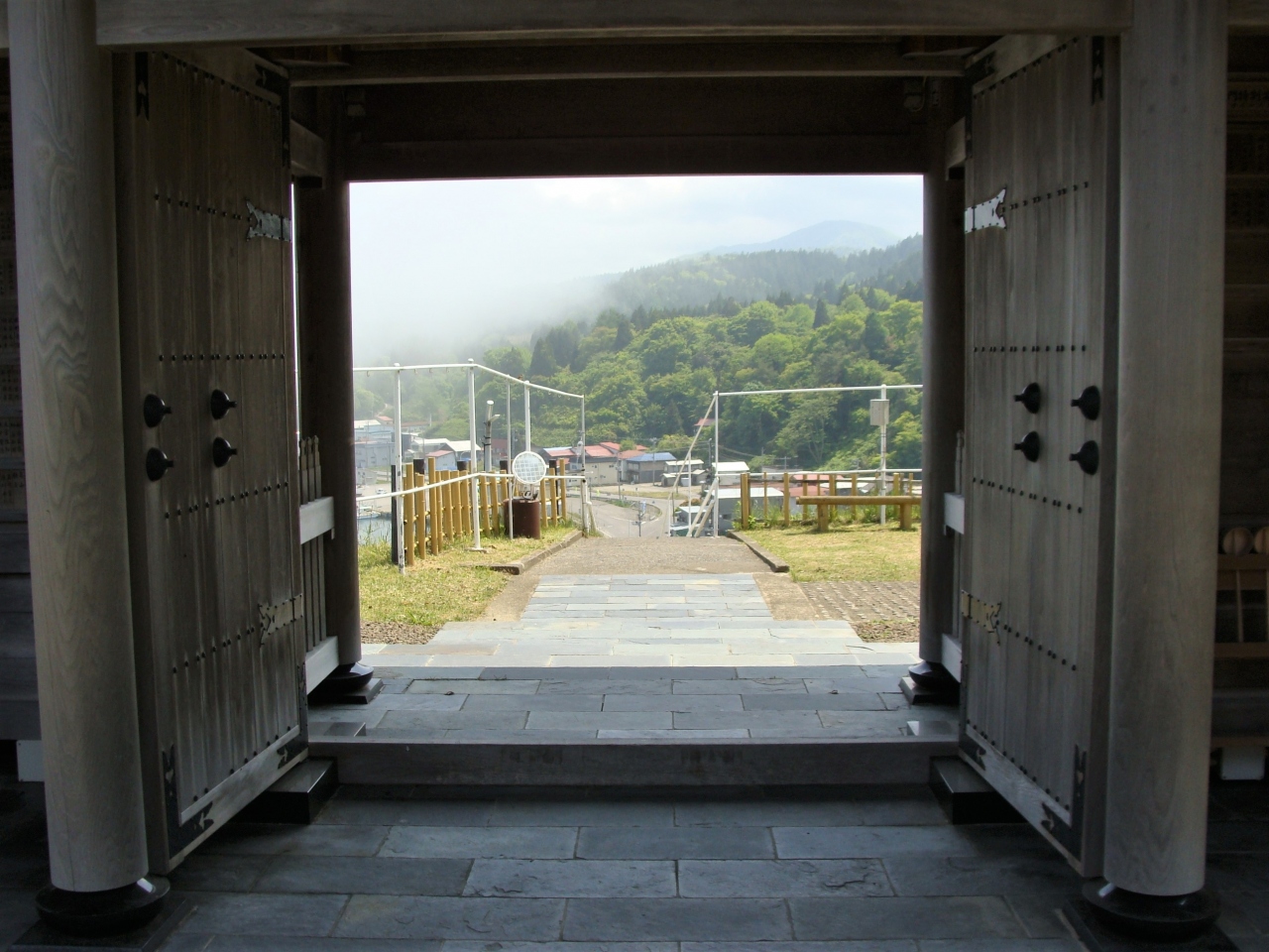 その反対側の山の上に在るのが「龍場山 義経寺・ぎけいじ」で目の前に在る数百段の階段をジグザク上って山門に辿り着けます(ゆえにご高齢の方は無理かも知れませんのでご注意を)。