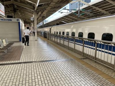夕方東京駅を出発する東海道新幹線、自由席に乗りましたが大混雑です。