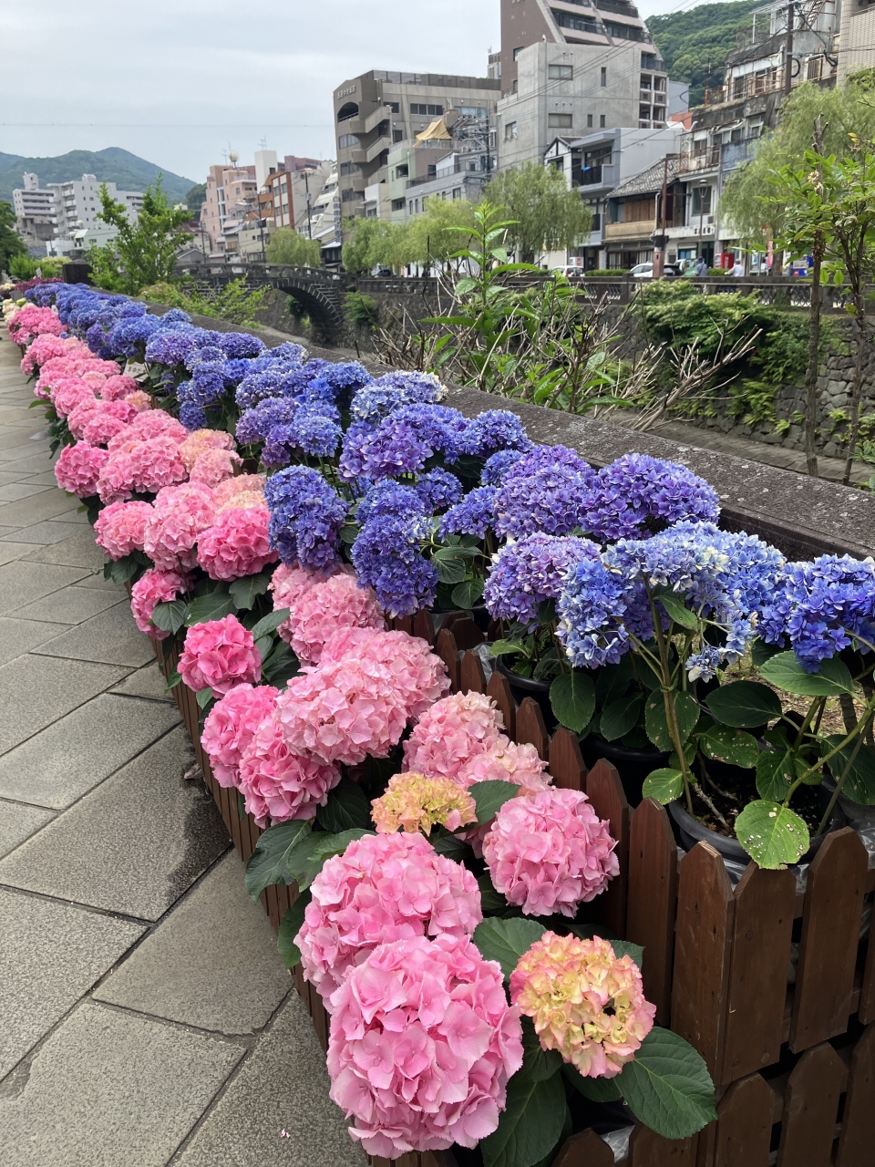 ちょうどあじさいの時期で、川沿いにたくさんのあじさいが咲いていて、とてもきれいでした。